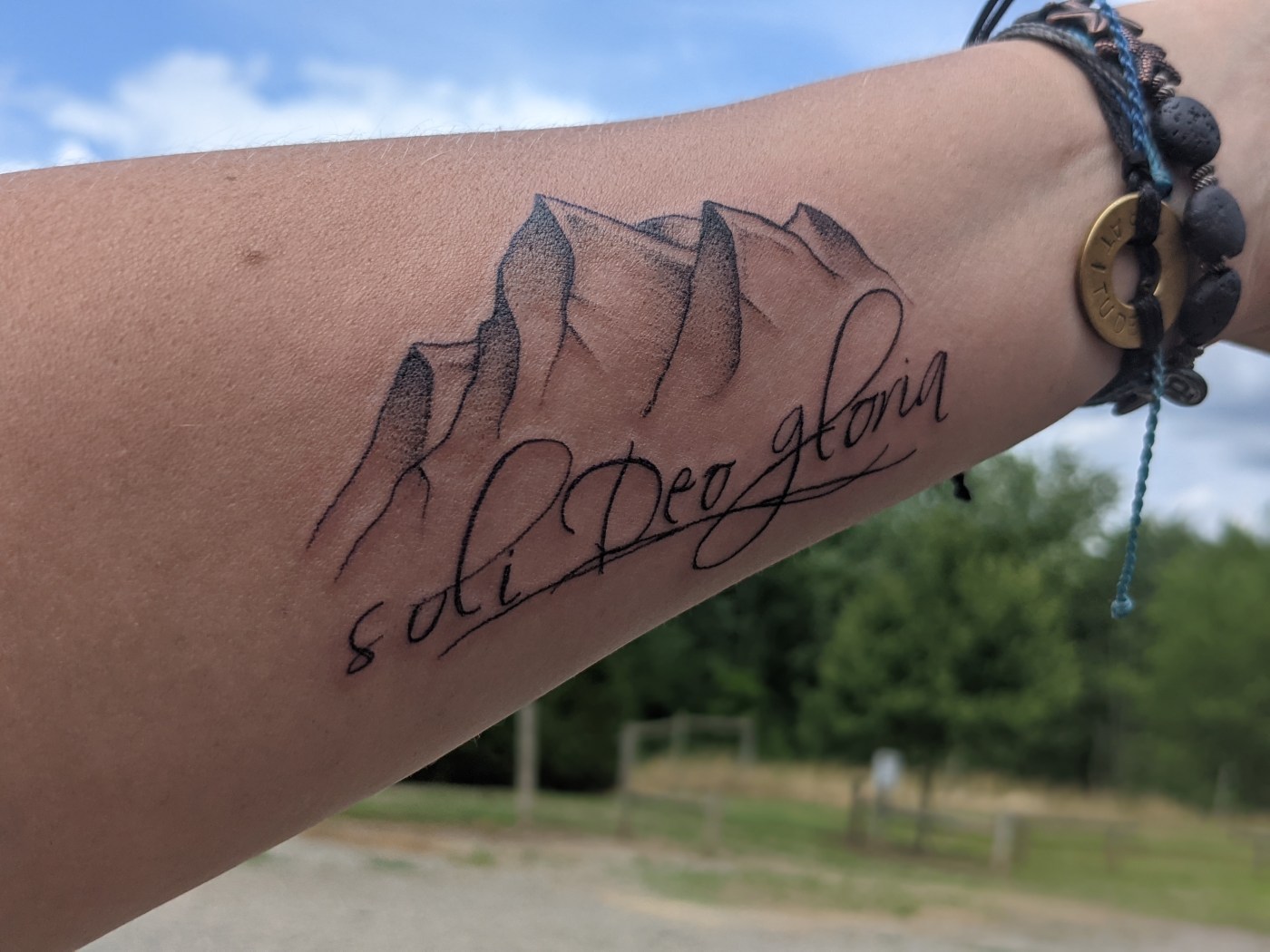 When I told friends I was getting a tattoo, and that it’d be one of the Solas of the Protestant Reformation, I had lots of questions. Some of my more formally-trained-in-seminary friends made a few jokes about signing my arm with Martin Luther’s Sola. Lots of people asked what it meant. And some people just liked the mountains I had put over it as a starting point.