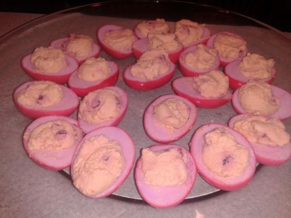 Mayo-Free Pickled Red Beet Deviled Eggs
